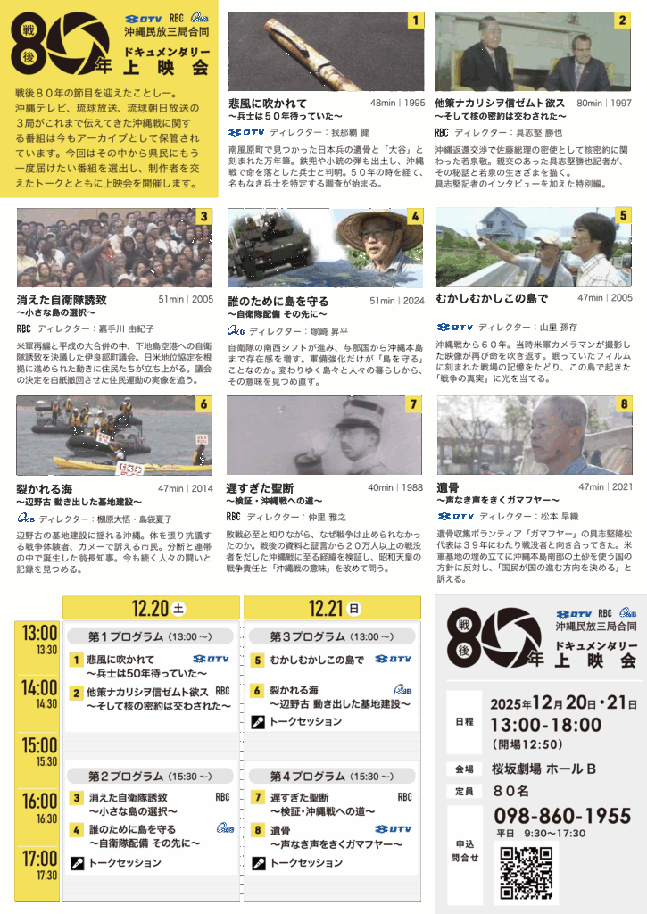 イベント事業部門の助成対象である「戦後80年沖縄民放三局合同ドキュメンタリー上映会」が12月20日(土)・21日(日)に沖縄・那覇の桜坂劇場で開催されます。