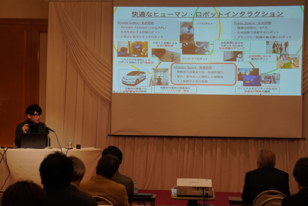 技術開発部門からは奈良先端科学技術大学院大学准教授の澤邊太志さんが「自動走行時の視覚と前庭感覚制御による快適なエンタメ体験の実現」について発表を行いました。