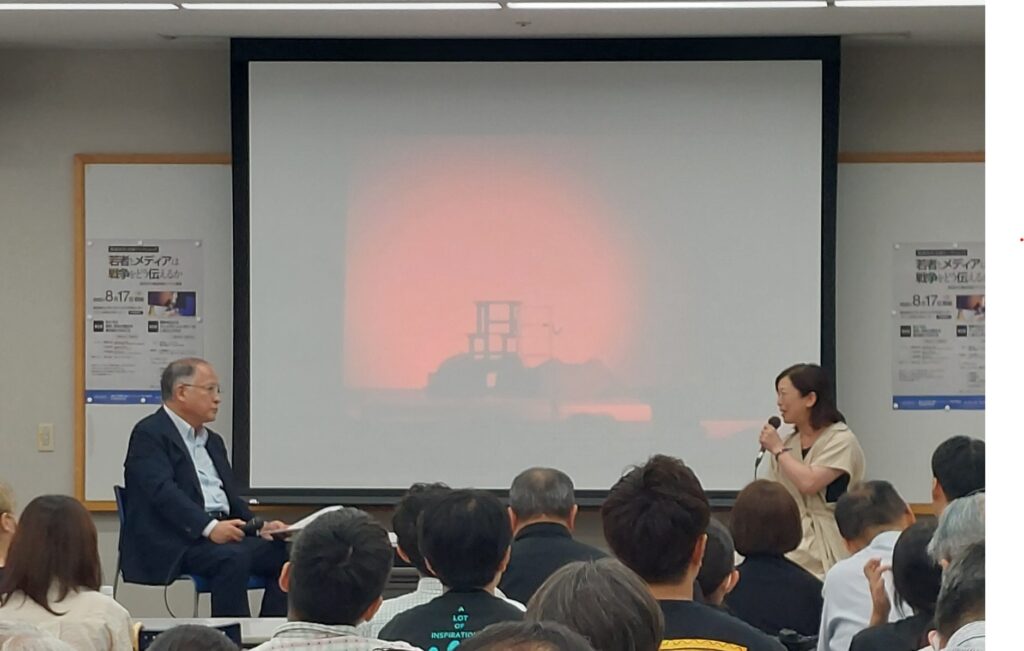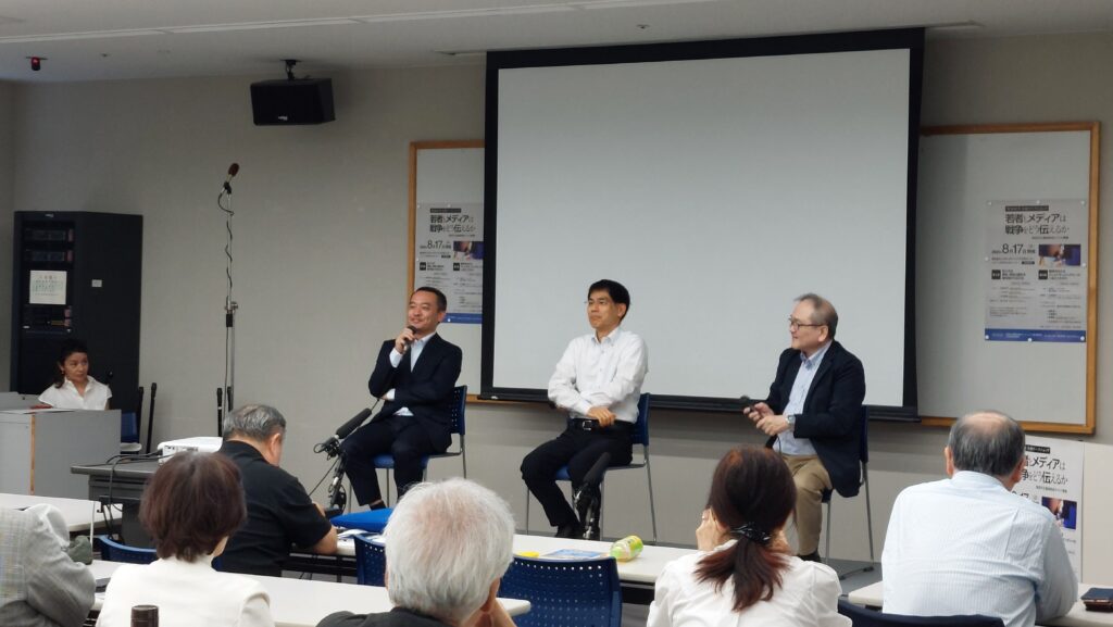 続くトークセッションでは、松野良一教授(中央大学)や山口朝日放送エグゼクティブプロデューサーの高橋賢さんと議論。松野教授は、特攻で亡くなった中央大学の先輩たちの軌跡を調査するプロジェクト「特攻と中央大学 記憶を後世に」の成果や課題を報告。高橋さんは戦争や安全保障のドキュメンタリー作品を紹介し、「戦争体験者がいなくなっても、伝える人がいれば伝わる」と力強く語った。
