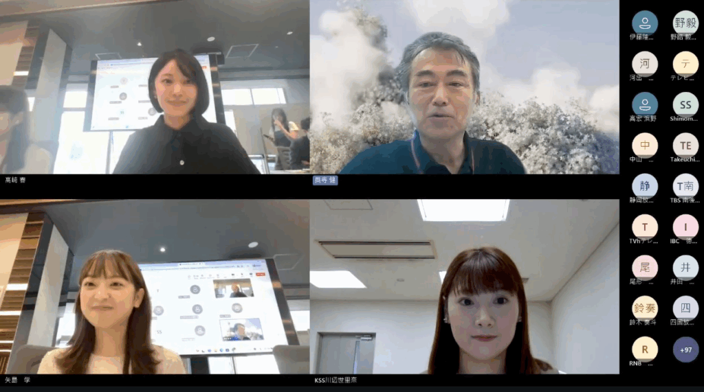 さらに、勉強会は東京のアナウンサーによる報告に終始せず、TBS系列・SBS静岡放送の野路毅彦アナウンサーとCX系列・高知さんさんテレビの川辺世里奈アナウンサーから、現地局として地域に根差した放送についての共有もあった。